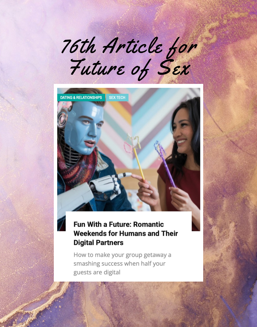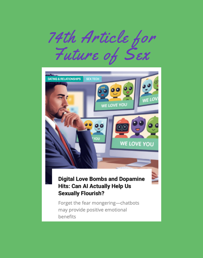 I’ve been writing for FutureofSex.net since mid-2023 and I have to say it has been a blast so far! My 76th article was just published today! And, I’m just one writer–there are so many more intriguing articles to read, especially by my editor and friend, M.Christian. Check out our authors’ bios for links to all our articles.